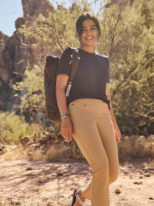 i atg by Wrangler kvinners fwds pull-on bukse, alt er mulig. disse buksene har en trendy kick-flare silhuett som passer rett inn hvor som helst du går. den er også laget av en ytelsesblanding med den perfekte mengde stretch for å holde deg i bevegelse med total komfort. disse allsidige buksene kommer med upf 40+ for å beskytte deg mot solen og en vannavstøtende finish for å holde deg tørr i regnvær. den kommer med to nedre lommer og en klokkelomme med glidelås for alt du trenger å ta med. fra rutinedager til uforutsigbare utflukter, damebuksene vil tjene deg godt i alle settinger.
