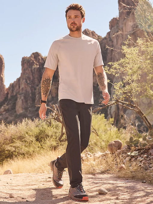 og gir en helt ny mening til allsidighet, atg by wrangler fwds-buksen er spesialdesignet for komfort som varer fra det øyeblikket du tar den på deg til det øyeblikket du slutt for i dag. fireveis dimensjonal stretch er en signaturfabrikasjon laget med aktive menn i tankene, sammen med et kileskitt, denne stretchteknologien lar deg strekke, bøye og huke fritt i alle retninger mens du beveger deg i den eneste retningen som betyr noe: fwds. 5-lommers buksene tilbyr en normal passform og avsmalnende benåpning for et polert utseende du kan bruke fra kontoret til golfbanen og fra treningsstudioet til favorittbryggeriet ditt. med fukttransporterende egenskaper, en vurdering på 50 og en resirkulert konstruksjon, er 5-lommers fwds-bukser for menn avgjørende for enhver aktiv livsstil.