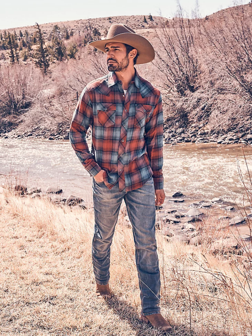 wrangler retro slim fit-jeans nikker til historien vår mens de introduserer passform og vask som passer for den moderne cowboyen. Designet med en tettere passform og benåpning som fortsatt faller komfortabelt over støvlene, gir våre jeans med rette ben og slim fit for menn ekstra stil til det klassiske utseendet du elsker. disse jeansene sitter lavt i midjen og gjør det enkelt å vise frem favorittbeltespennen din. denne designdetaljen er vår western-arv som viser seg gjennom, noe som ofte skjer med wrangler-retrokolleksjonen. Hvis du går for en koordinert cowboy-stil med disse slim fit jeansene for menn, kan du pare dem med en western wrangler retro button-up for å fullføre looken.