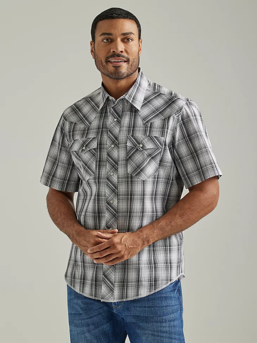 klær nei Wrangler menn fashion snap kortermet western snap rutete skjorte sjakkgrå (112326471) 8V40463
