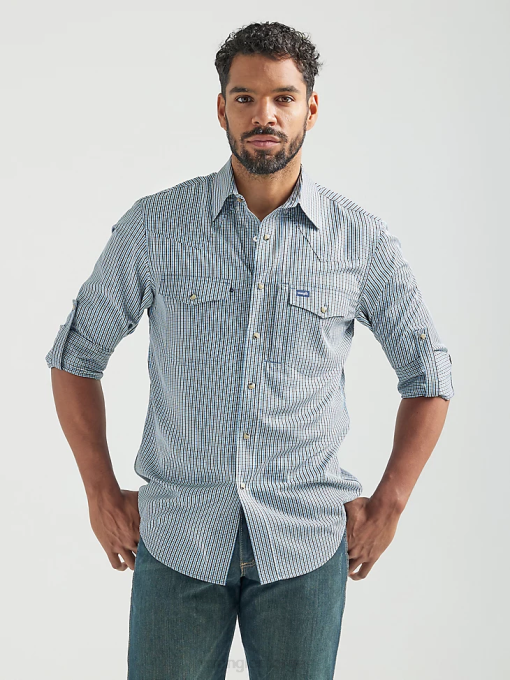 all western-stylingen du elsker og ønsker med ytelsesfunksjonene du trenger. denne langermet rutete skjorten kommer fullt utstyrt med UV-beskyttelse og en fukttransporterende finish for å holde deg beskyttet mot elementene. Denne skjorten med klassisk passform kommer med spisse åk og full trykknapplukking samt en skjult trykkkrage for å holde deg polert og klar for alt dagen bringer. en skjult ventil bak gjør denne skjorten enda mer pustende, og innebygde ermeholdere gjør det enkelt å justere utseendet ditt i farten. mellom de to brystlommene og lommen i napoleonstil med glidelås på venstre side, har du rikelig med oppbevaringsplass for det du trenger. pluss at den kommer med en brillerens nederst for å holde deg flekkerfri. bruk den med favorittparet ditt wrangler retro eller 20x jeans for å fullføre antrekket