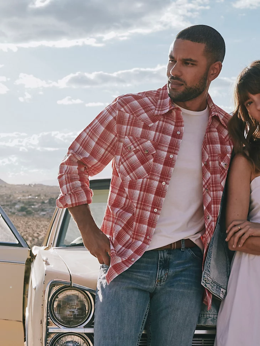 klær nei Wrangler menn retro langermet westernskjorte med sagtann med trykklomme fet rød (112324672) 8V40691